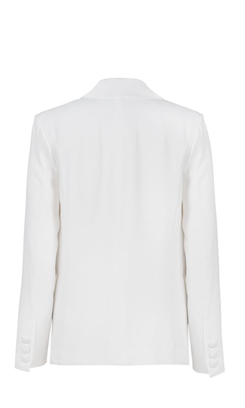 Fabric description: Made of 100% Silk, Lining 100% silk A women's oversized black jacket from luxurious "Super Cady" silk fabric. This statement piece features a…Jacket “White Chic”