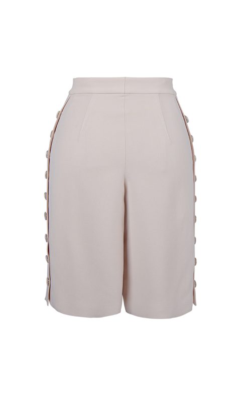 Fabric description: Material: 55% Acetate, 45% Viscose Lining: 100% Pure Silk Description: Beige Bermuda shorts are elegant knee-length shorts with a high waist. They snugly…