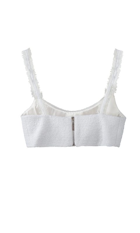 Fabric description: 49.7% Polyester, 29.2% Acrylic, 18.2% Cotton, 1.1% Nylon, 1.8% Other Fibres Lining 100% Silk A short white tweed top with elegantly adorned straps.…Short «Black Diamond»
