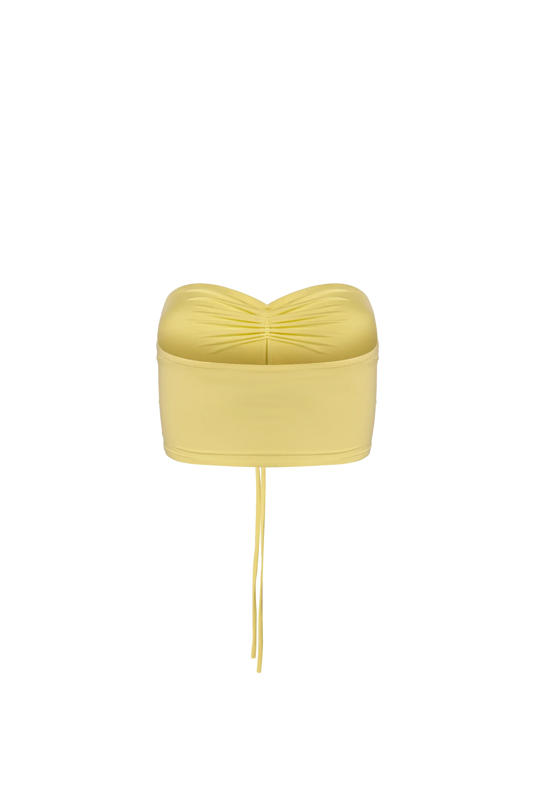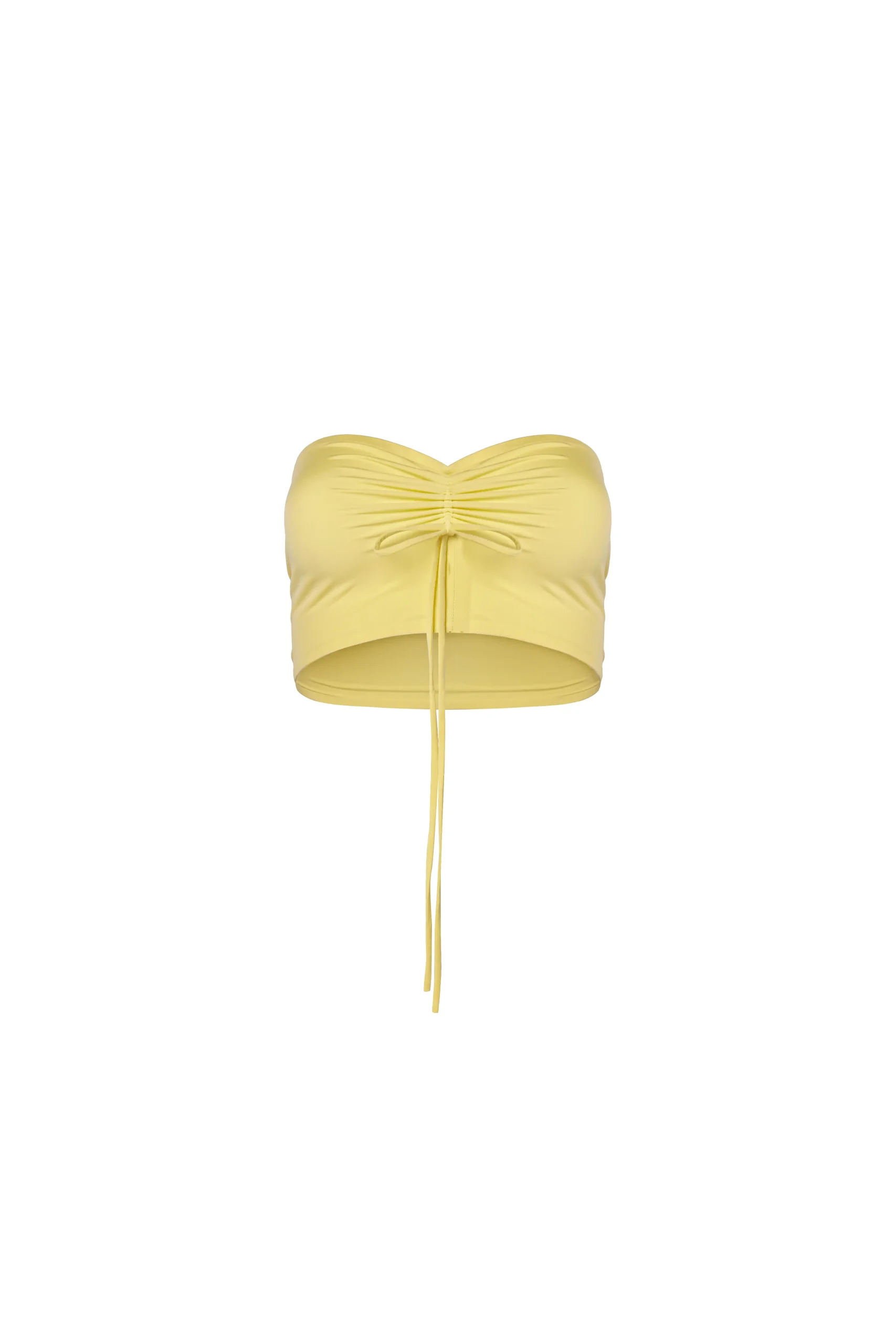 Introducing our Bandeau Tube Top with Front Tightening Lace — where style meets sophistication! This stunning yellow top is crafted from a luxurious blend of 79% Polyamide and 21% Elastane, ensuring a perfect fit that hugs your body while providing ultimate comfort. Infused with 100% Positive Energy, this piece radiates confidence and charm.