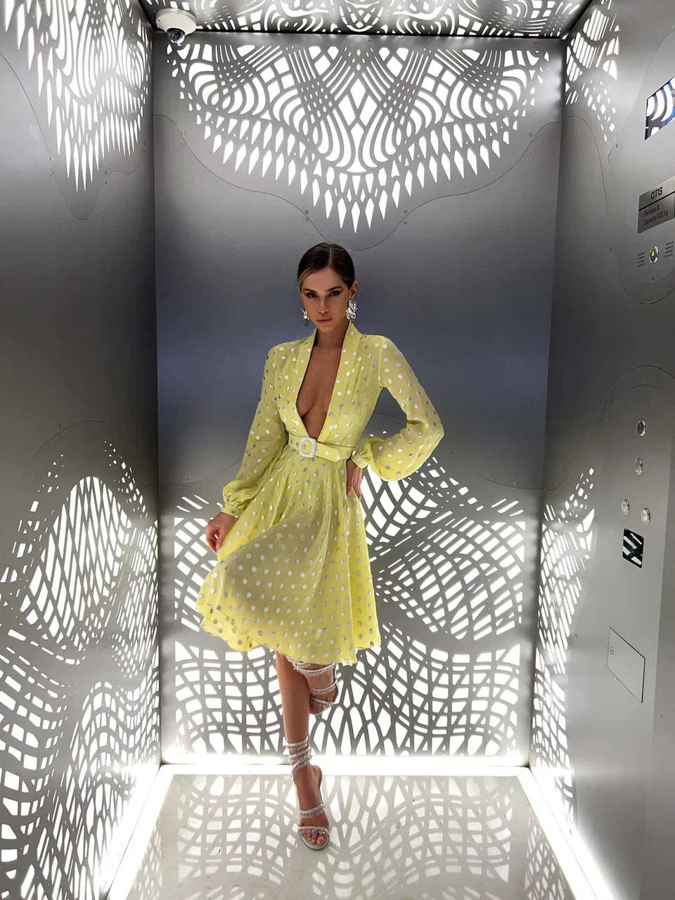 Fabric description: 81% Viscose, 18% Silk, Lining 100% Silk The black velvet dress is an embodiment of exquisite elegance. Its short length and daring deep…