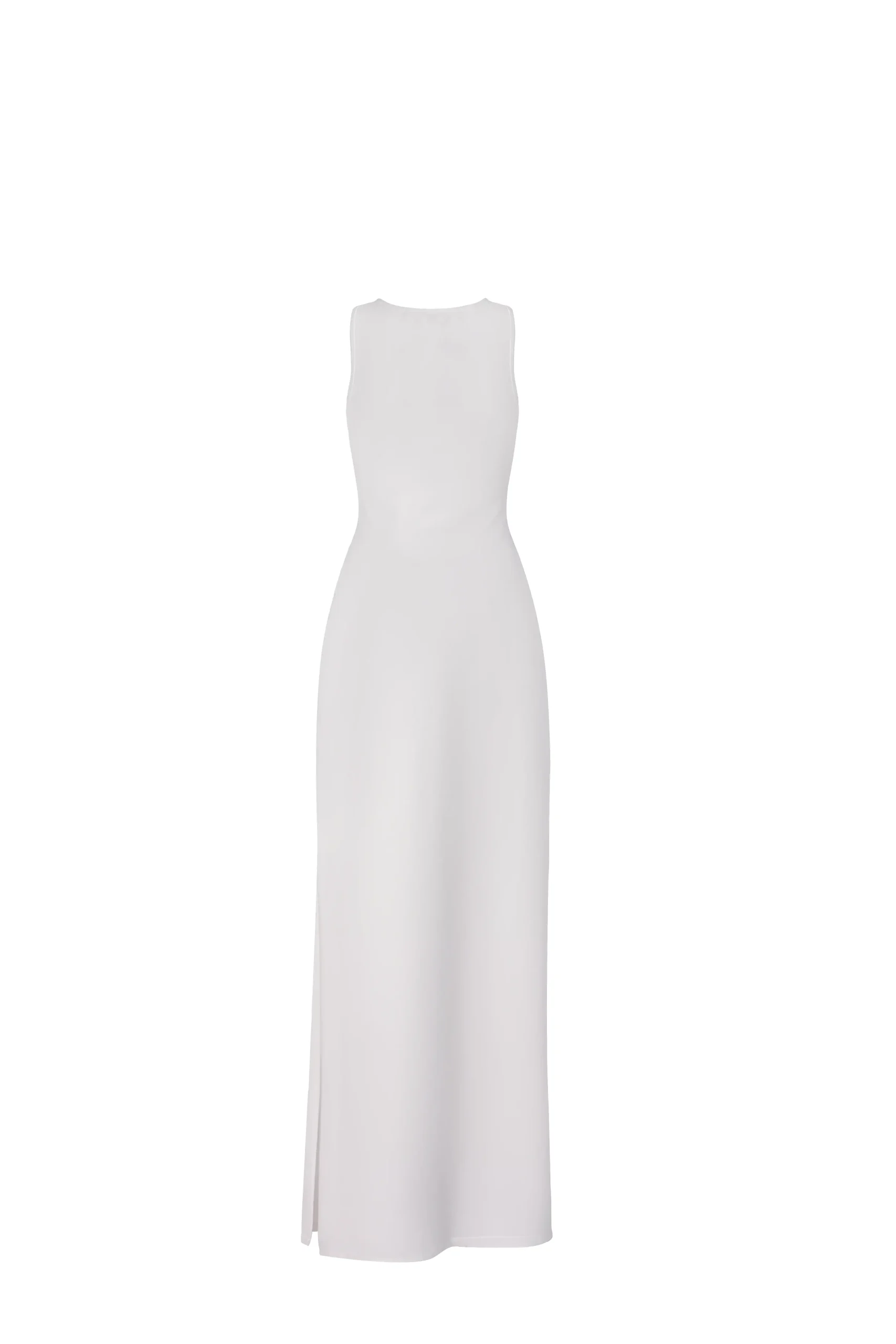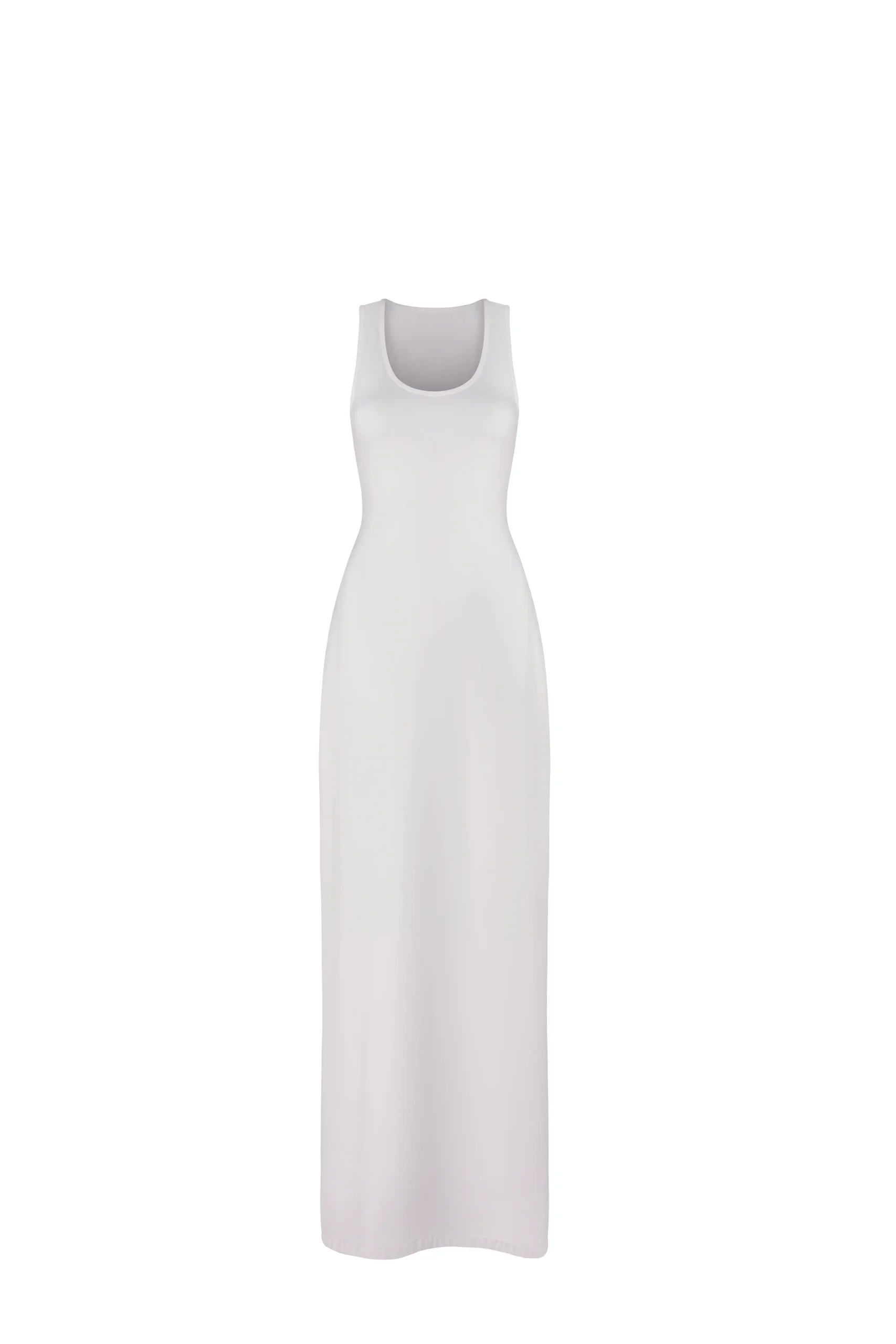 Fabric Material Description: 94% Cotton, 06% Elastane Elegant form-fitted full-length dress. It features a slit at the back, reaching the knee, adding a sophisticated touch…In stock