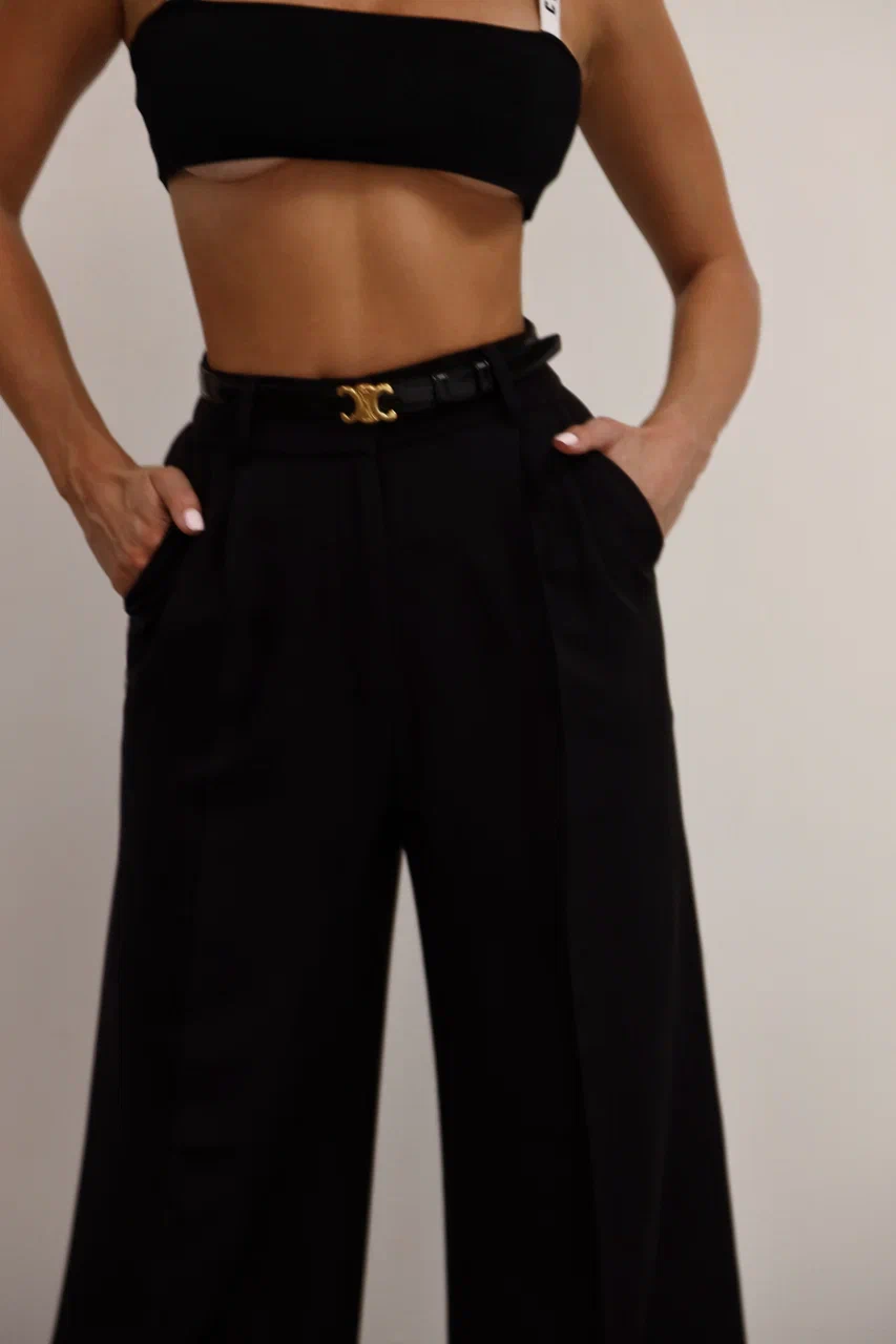 Women’s black pants made from exquisite Cady fabric – an elegant blend of a classic high-rise design with a slight flare towards the bottom.