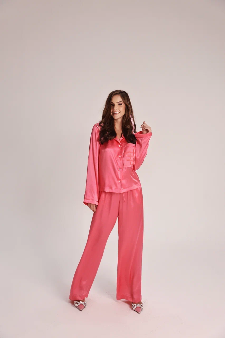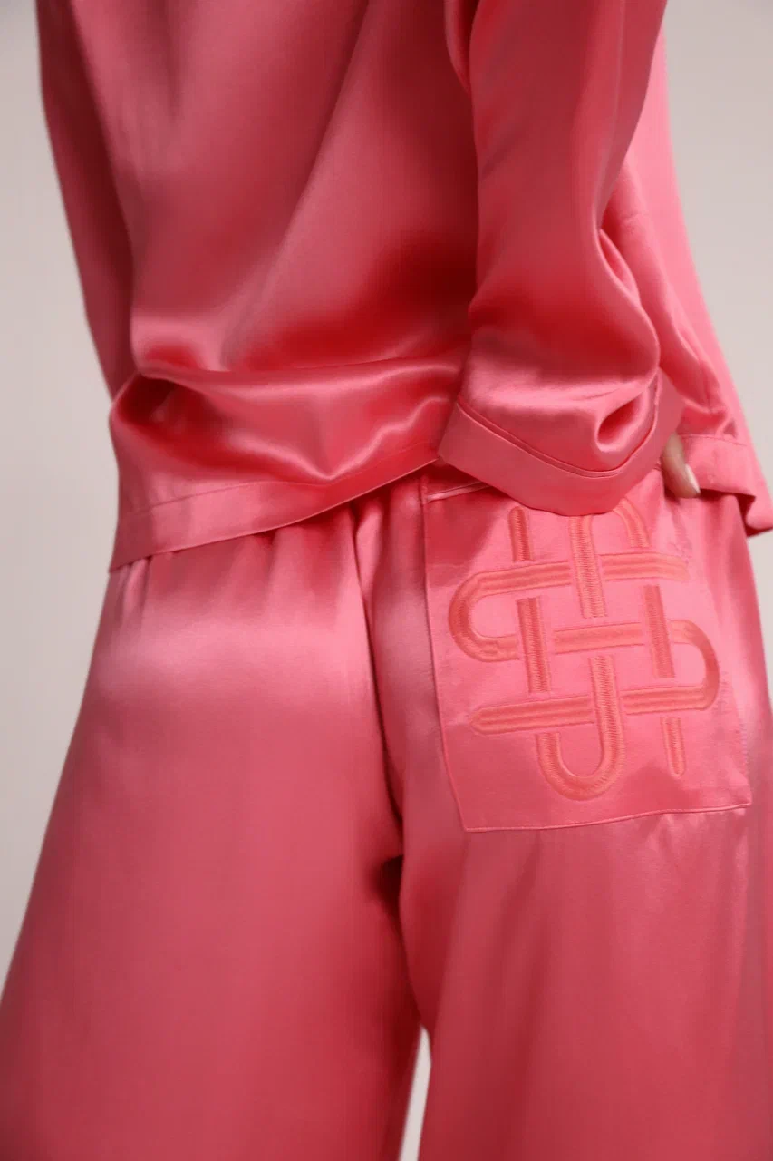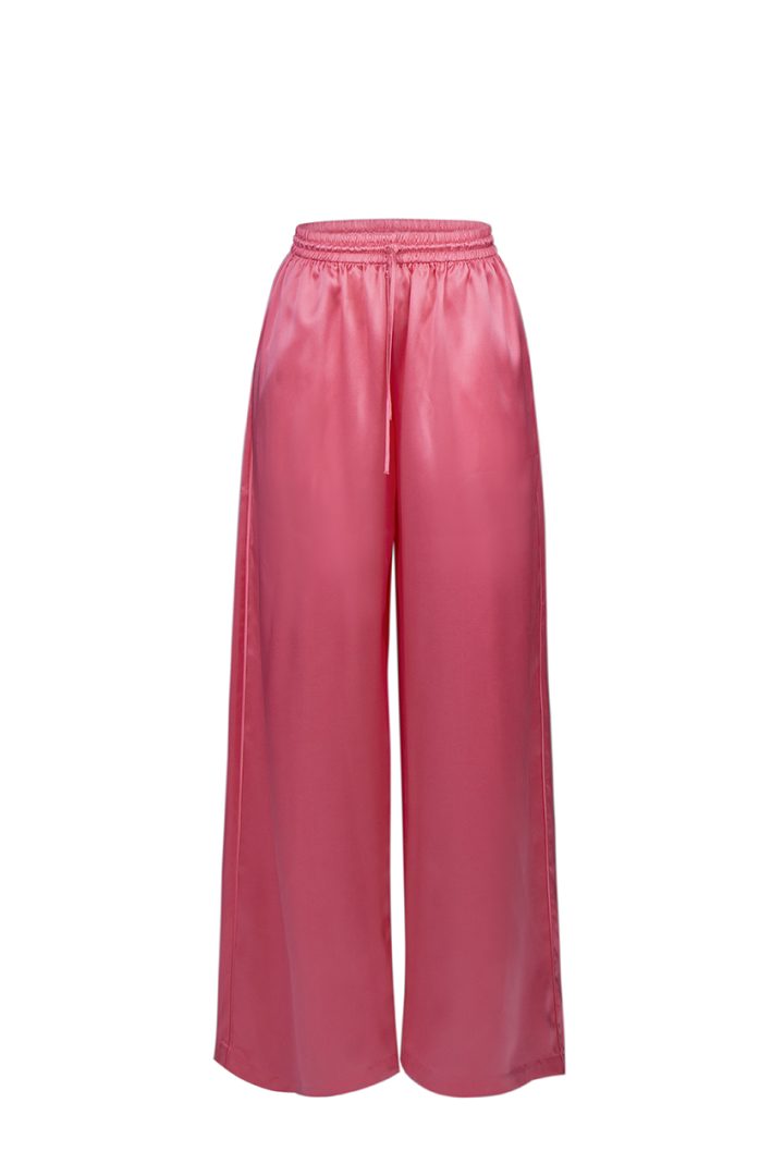 Pink silk pants are a symbol of comfort and style. With a comfortable elastic waistband and an elegant flare towards the bottom,they provide exceptional comfort.