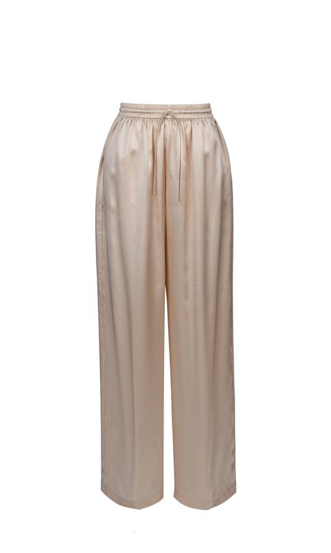 Fabric description: 100% Silk Beige silk pants are a symbol of comfort and style. With a comfortable elastic waistband and an elegant flare towards the…