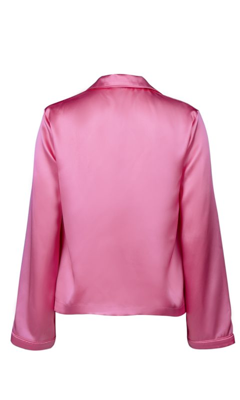 Fabric description: 100% Silk This is an exquisite pink silk top, designed in a classic style with a standard length. It is adorned with a…